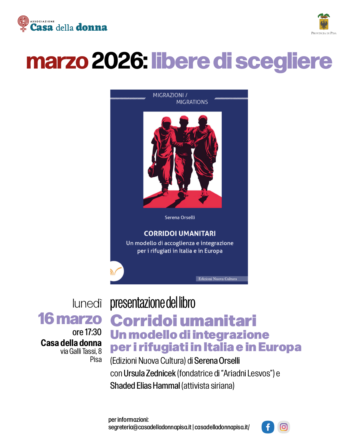 Lunedì 16 marzo, alle 17:30 presentiamo alla Casa il libro "Corridoi umanitari - un modello di integrazione per i rifugiati in Italia e in Europa", scritto da Serena Orselli e pubblicato da Edizioni Nuova Cultura.