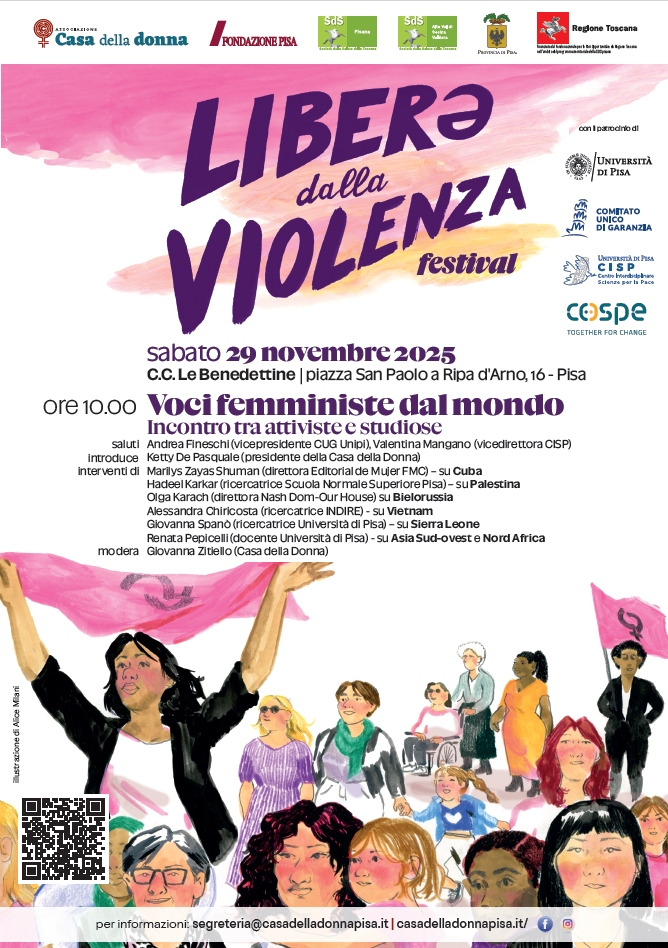 INGRESSO GRATUITO CON PRENOTAZIONE entro giovedì 21 novembre alla mail: segreteria@casadelladonnapisa.it