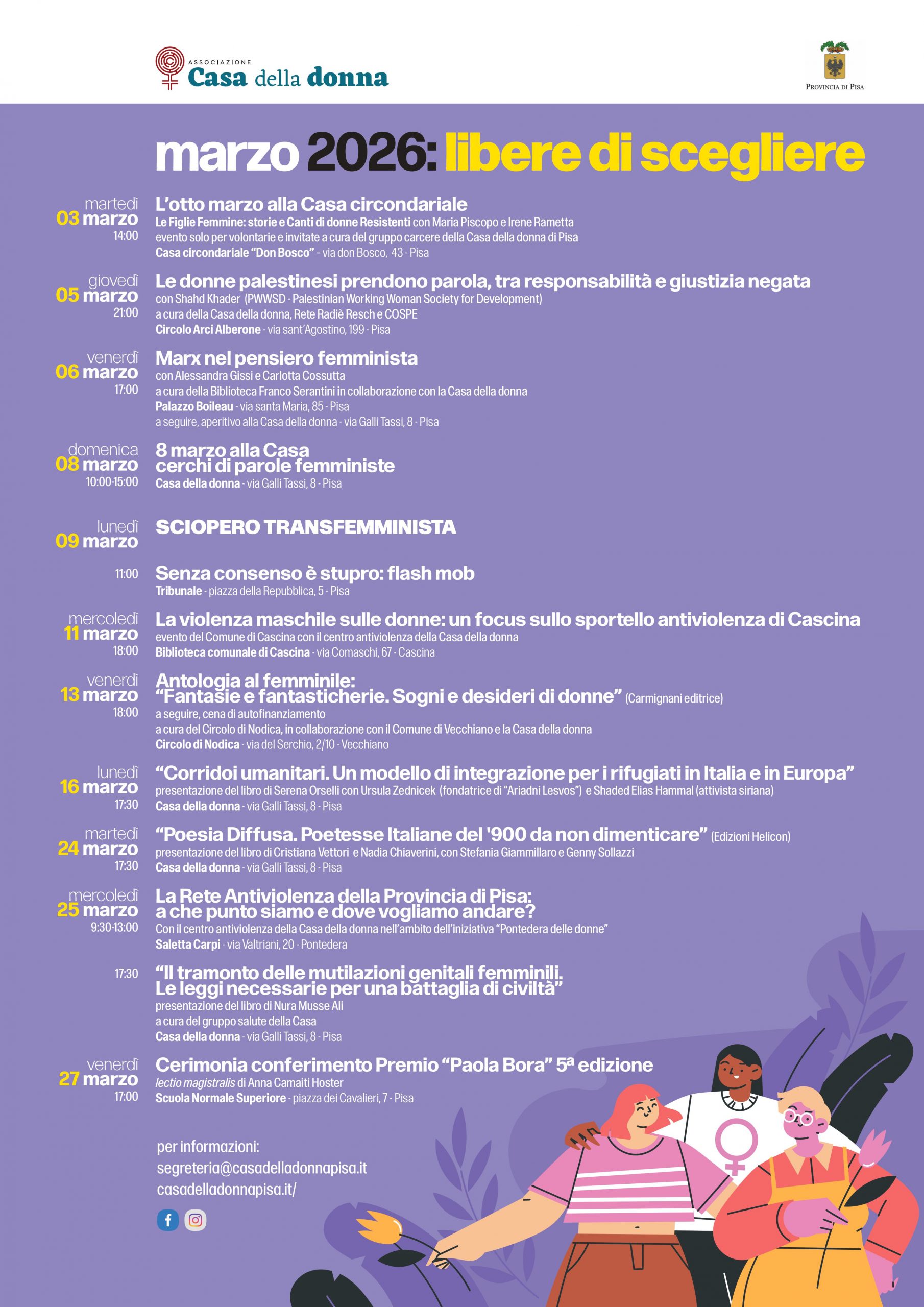 Si avvicina l’8 marzo, Giornata internazionale dei diritti delle donne, e anche quest’anno la Casa della Donna di Pisa propone un calendario ricco di incontri, riflessioni e momenti di mobilitazione.