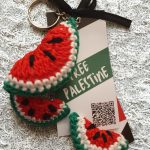 Tra gli oggetti in offerta, anche i portachiavi e spille in solidarietà alla Palestina, realizzati dalle donne del nostro gruppo Le Streghe.
